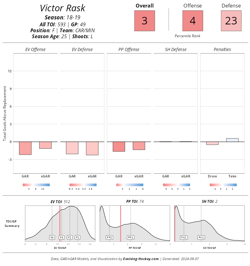 What is true of McCurdy’s model is true of many more we’ll discuss: these advanced stats are not how we make sense of outcomes, but how we make sense of methodologies — which is what they really are. This chart is not saying “Pavelski is worse than a 4th liner while Faksa is a mid-level 3rd liner.” It’s saying “I’ve created this mathematical procedure to help us determine the scheduled net value of a player, from shift to shift, in proportion to his peers. By that estimation, Faksa was more valuable even strength performer outside of his production than Pavelski.”