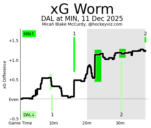 Wait a second. I told you I’m a man of my word. The other day I posted one of these immediately following the Winnipeg game. One of my fellow nerdonauts noticed that the chart the day after was markedly different. The reason is because data that gets backfilled can be quite significant. For example, a shot that happened right after a giveaway, or a shot that was later registered as a tip. That last bit is important precisely because if a shot gets turned into a tip, that also changes the location, which is typically the variable that affects shot probability the most. I wanted to highlight this because the Bad Team Trying to Rationalize Their Bad Analytics piece that was posted yesterday reminded me how much credit these public models deserve for the care and upkeep that goes into them.